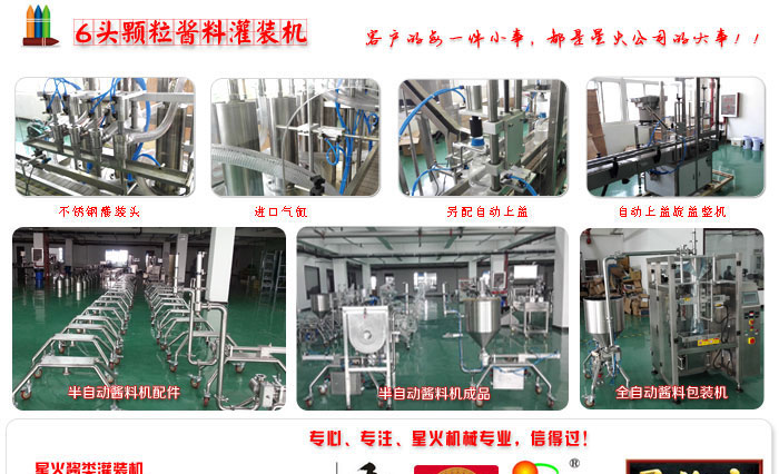 1. 主要用于麻辣酱、香辣酱、牛肉酱、豆辨酱、鲜辣酱等,是我司自主研发的新产品。使产品在使用操作、精度误差、装机调整、设备清洗、维护保养等方面更加简单方便。