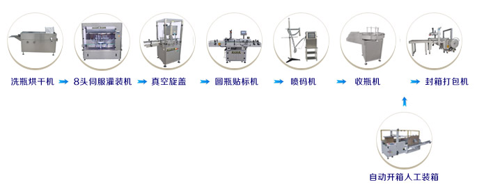 送瓶洗瓶烘干8头灌装旋盖封口贴标生产线