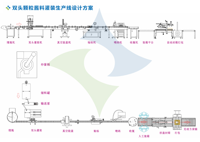 双头颗粒酱料灌装生产线设计方案